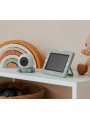 Le babyphone caméra qui s'emporte partout grâce à ses batteries rechargeables et ses nombreux accessoires d'accroche. Grand écran 5 pouces HD, qualité optimale de 720P 4 systèmes d'accroche inclus : socle, ventouse, fixation murale et pince Grand écran de 5" Vision nocturne de qualité Activation à la voix pour économiser votre batterie 8 berceuses intégrées Fonction Talkie Walkie Portée de 300m en champ libre Alarme visuelle et sonore Possibilité de connecter jusqu'à 4 caméras (caméra additionnelle vendue séparément) : visualisez simultanément plusieurs chambres différentes Unité Parents : batterie lithium rechargeable.(câble USB-C inclus) - Unité Bébé : batterie lithium rechargeable (câble USB-C inclus). Livré avec : 2 câbles USB-C Un socle pour poser le babyphone Une ventouse pour coller le babyphone contre des fenêtres Un kit mural pour accrocher le babyphone Une pince pour clipser le babyphone sur le lit bébé