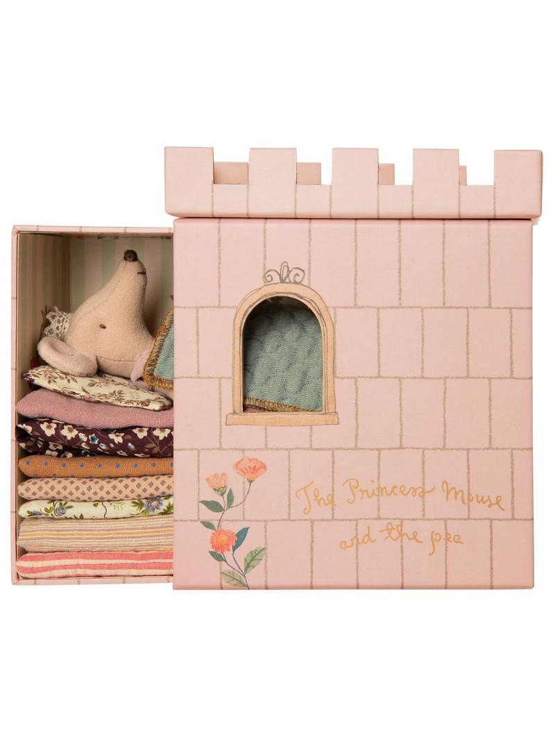 Rencontrez cette petite princesse souris dans son château, elle se blottit dans son lit luxueux mais il y a un petit pois qui la tient éveillée! Tout comme l'histoire classique ...