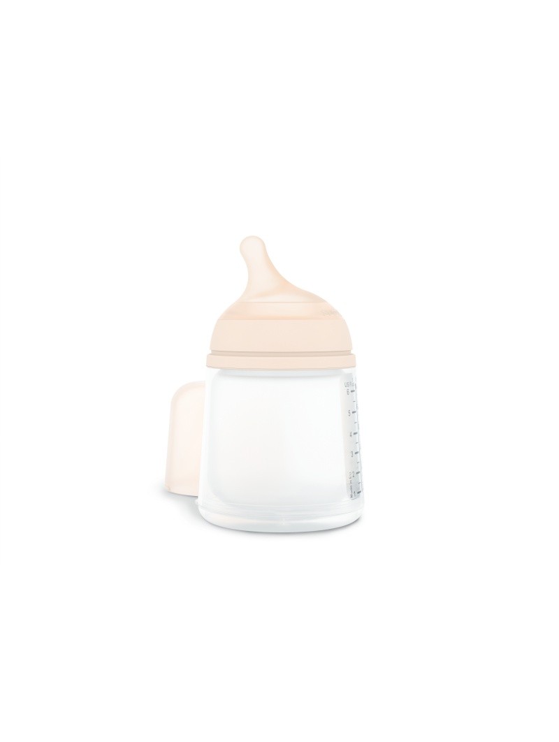 Fruit de la simple observation de la nature, ce biberon est unique par son système de poche anti-colique brevetée. Au fur et à mesure que bébé tète, la poche se rétracte comme le font les glandes mammaires. Cela contribue non seulement à éviter les coliques gazeuses de bébé et les reflux, mais aussi à empêcher l'air d'oxyder le lait et détruire ainsi les nutriments qu'il contient. Pas de bulles d'air : Bébé avale moins d'air pendant la tétée, ce qui réduit considérablement le risque de coliques.