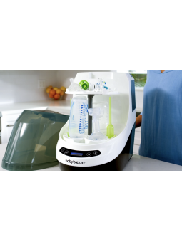 Le lave-biberons Bottle Washer Pro de Babybrezza offre un nettoyage puissant et hygiénique avec 6 modes incluant lavage, séchage et stérilisation.