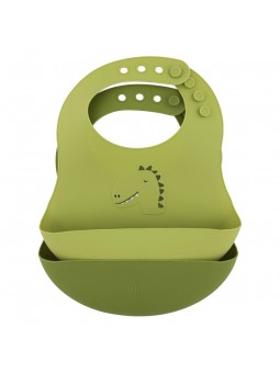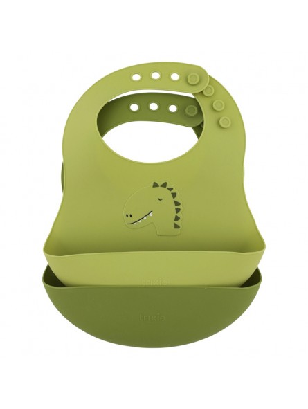 Lot de 2 bavoirs avec récupérateur en silicone Mr. Dino. Ils sont munis d'un récupérateur pour limiter la chute des aliments lors du repas. Le bavoir est doté d'un système de réglable de la taille au niveau du cou. Ce lot est parfait pour accompagner les premiers repas de votre enfant.