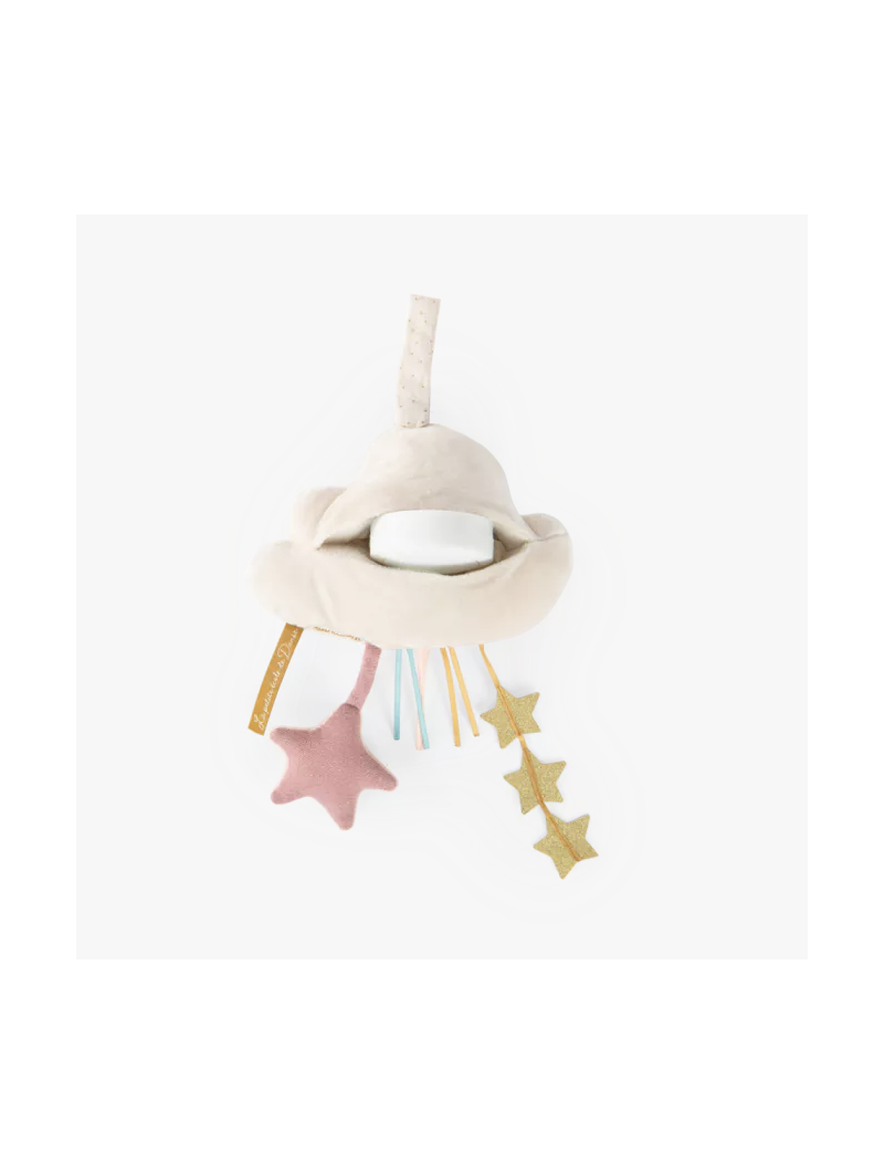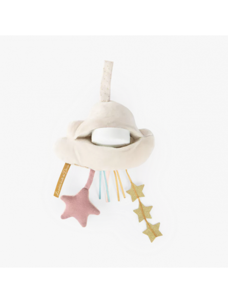 Facile à installer grâce à son lien d'attache, ce joli nuage possède des rubans et des étoiles qui éveilleront la curiosité de votre enfant. Bébé pourra s'amuser à les attraper stimulant ainsi ses sens.
