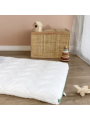 Le matelas de voyage roulé offre un confort optimal pour bébé en déplacement, garantissant un sommeil aussi agréable qu’à la maison. Son cœur en mousse polyuréthane (25kg/m³) est recouvert d’un voile 100% coton et d’une housse en TENCEL™ et polyester recyclé, naturellement anti-feu et sans traitement chimique.