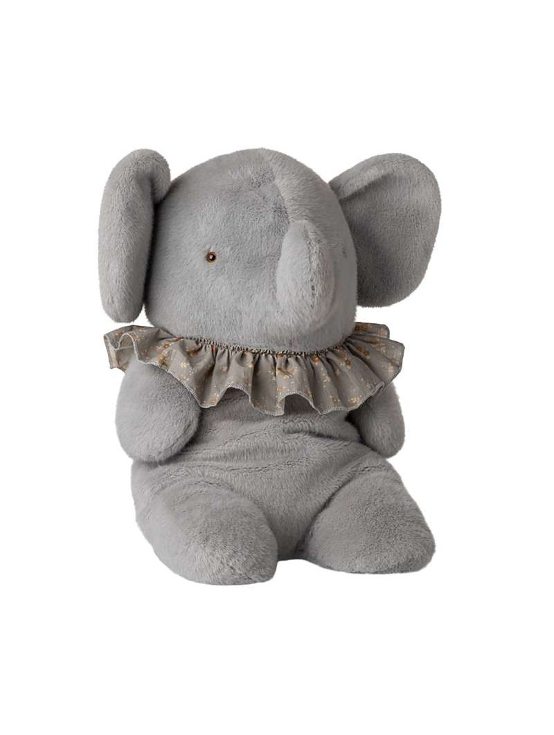 Cet éléphant est confectionné dans une peluche ultra-douce, incroyablement agréable au toucher et parfaite pour de tendres câlins. Il tient assis tout seul grâce aux billes qui le lestent. 45cm