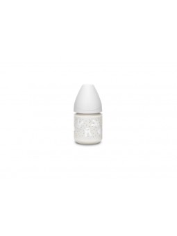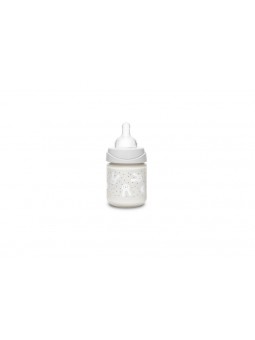 Biberon en verre à col large, livré avec une tétine ronde anti-colique à débit lent (S) en silicone.
