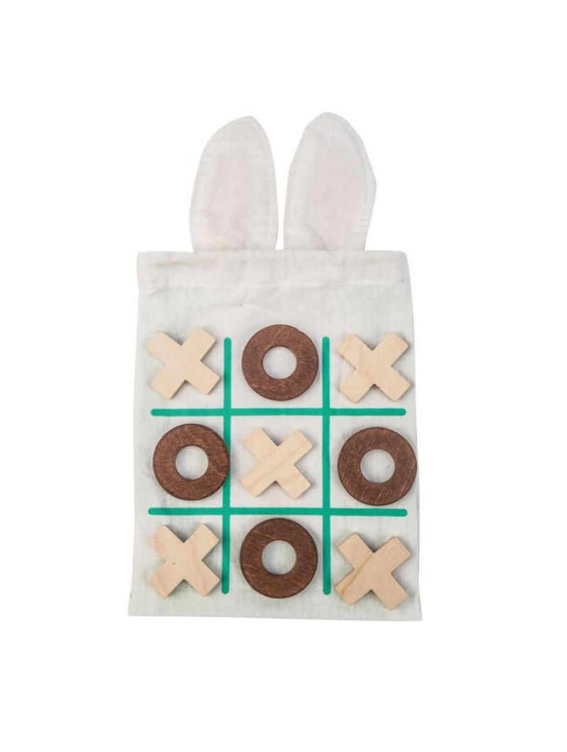 Informations Techniques: Amusez-vous avec des amis avec un jeu compétitif de morpion. Un adorable sac à cordon de lapin est inclus pour un rangement facile. Sortez les zéros et les croix et utilisez le verso imprimé du sac pour la grille !