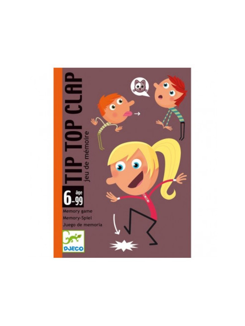 Informations Techniques: Découvrez Tip Top Clap de Djeco, un jeu d'observation et de mémoire visuelle, un jeu de cartes pour les enfants à partir de 6 ans. Tip Top Clap est un jeu d'ambiance dans laquel il faut se concentrer pour mémoriser puis enchaîner les bruits et mimes indiqués sur les cartes piochées sans se tromper. La suite de bruits et de mîmes se crée et s’allonge au rythme du jeu... Rires et ambiance assurés pour ce jeu de mémoire inédit! Des cartes avec des illustrations colorées et rigolotes, rangées dans une boite compacte, un jeu de voyage à emporter partout.