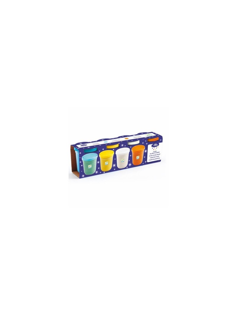 Informations Techniques: Découvrez les 4 pots de pâte à modeler pailletées pour les enfants dès 18 mois de Djeco, une pâte ultra souple qui ne tâche pas pour que la création de votre enfant s'exprime avec ses doigts. 4 couleurs pailletées pour continuer à créer. Ce set se compose de 4 pots de pâte à modeler ( pot de 140 grammes) de couleur blanc, orange, vert et jaune avec des paillettes.