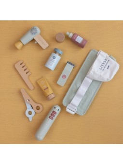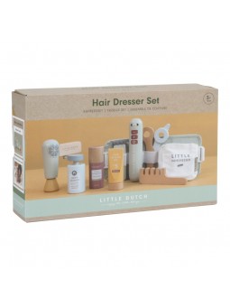 Informations Techniques: Deviens coiffeur/ coiffeuse professionnel(le) !! Invite tes amies, ta famille et tes poupées dans ton propre salon de coiffure. Glisse toi dans la peau d’une coiffeur/se avec la ceinture réglable et crée les coiffures les plus incroyables. Ce set en bois avec le matériel de coiffure nécessaire contient des ciseaux pour enfants, un sèche-cheveux, un fer à lisser, une tondeuse, un peigne, du shampoing, de la laque et du gel coiffant. Votre petit bout de chou adorera jouer à ce chouette jeu d’imitation !