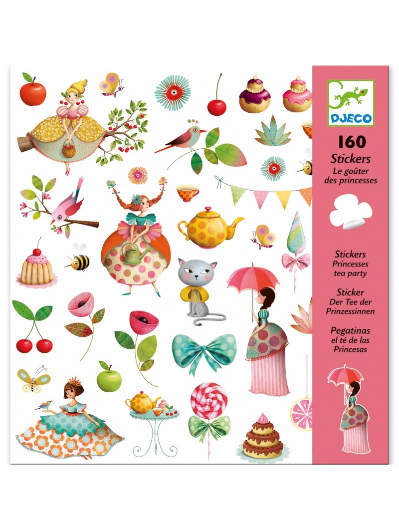 Informations Techniques: Stickers autocollants "Princesse" de Djeco. Lot de 4 planches de sticker sur le thème du thé des princesses aussi jolis les uns que les autres ! Ces autocollants princesses Djeco séduiront les petits doigts des enfants... Il y a 160 pièces de tailles différentes, 2 x 2 planches identiques.