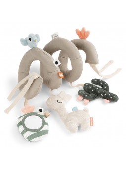 Informations Techniques: Pour occuper bébé dans son transat ou sa poussette Avec la Spirale d'Activités de Done by Deer les petites mains et les yeux de votre enfant pourront explorer différentes activités. Lalee ravira votre tout-petit avec sa douceur et son papier à froisser à l'intérieur, le cactus sensoriel suscitera la curiosité et le miroir sera un réel divertissement avec le son amusant qu'il produira. Très facile à installer, cette spirale pourra être fixée à une arche d'activités mais également au berceau, au siège auto ou encore à la poussette. Vous pourrez la déplacer et l'emmener en voyage pour divertir bébé partout.