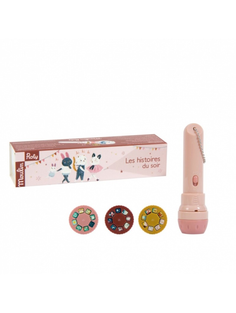 Informations Techniques : Lampe torche de poche où chacun des 3 disques projetés sur le mur raconte une histoire. Elles racontent les aventures tendres et oniriques des créatures d'Après la pluie. Un instant magique pour développer l'imagination des enfants...