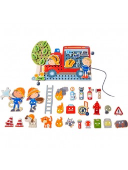 Contenu : 1 camion de pompier, 38 plaquettes à lacer, 2 cartes modèles (imprimées des deux côtés). Avertissements: Attention - Ne convient pas aux enfants de moins de 3 ans.