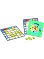 Informations Techniques : Tableau à double entrée à compléter selon les formes et les couleurs de magnifiques illustrations. L'enfant prend une carte illustrée et recherche les fleurs, les gouttes, les ronds, les losanges et les carrés. Pour chaque forme trouvée il place une étoile dans un creux du tableau, à l'intersection entre la ligne de la forme et la colonne de la couleur concernées. Un bien joli jeu qui reprend de manière originale le concept de tableau à double entrée.
