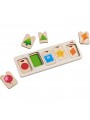 Informations Techniques : Rouge, bleu, vert ou jaune ? Trop cool d'apprendre les formes et les couleurs avec ce puzzle en bois d'Haba ! Le puzzle dispose de 3 niveaux superposés. En associant simplement les couleurs au symbole correspondant, l’apprentissage des couleurs et la motricité fine sont stimulés de manière ludique.