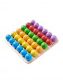 Contenu: 36 boules en bois (4,6 cm) aux couleurs de l'arc-en-ciel (6 en rouge, orange, jaune, vert, bleu, violet), 1 planche (31 x 31 cm), 1 paire de pince en bois, démontable en 2 cuillères, 30 modèles de cartes, 1 jeu d'instructions.