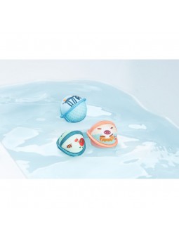 Ces 3 balles de bain flottantes en différentes dimensions représentent des animaux de la ferme. Vos petits poissons s'amuseront à lancer et rattraper les balles dans l'eau et exerceront leur aptitude à manipuler une balle, mais aussi leur coordination main-œil.