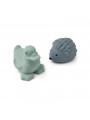 Jouets pour le bain Liewood en caoutchouc naturel et écologique. Ces jouets moelleux au poids léger et à la texture douce sont souples et peuvent être manipulés, explorés et surtout mastiqués sans danger par votre bébé.