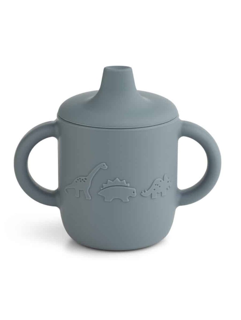 Informations Techniques: La tasse pour apprendre l'autonomie La tasse d’apprentissage Liewood est spécialement conçue pour les enfants en âge d’apprendre à boire seuls. Outre son design minimaliste qui nous fait craquer, on aime particulièrement sont toucher souple et doux ainsi que sa résistance à toute épreuve. En silicone alimentaire de la plus haute qualité, la tasse à bec Liewood est en effet incassable. Les 2 anses permettent à l'enfant une bonne prise en main. Le gobelet d’apprentissage Liewood passe au lave-vaisselle. Tasse d'apprentissage en silicone Liewood - Dino bleu Toucher souple et doux agréable