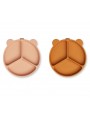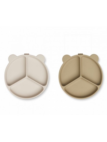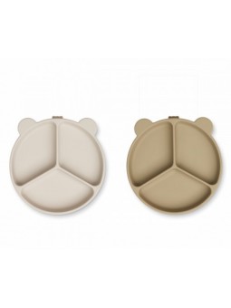 Pour diversifier facilement l'alimentation de votre tout-petit, Liewood vous propose ce Lot de 2 Assiettes Compartimentées Stacy. Composées de trois compartiments bien distincts, ces deux assiettes feront découvrir à votre p'tit loup différentes sortes d'aliments en même temps au moment de son repas. Légumes, féculents, viandes ou poissons, voilà de quoi ravir les papilles ! Et pour faire de nouvelles découvertes gustatives en toutes sécurité, ces deux assiettes disposent chacune d'une ventouse. Il sera donc quasiment impossible de les soulever ou de les faire basculer. Vendues par deux, ces assiettes seront idéales pour des jumeaux ou tout simplement pour en avoir toujours une prête à l'emploi.