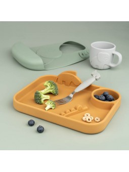 Fabriquée en silicone alimentaire, l'assiette à compartiments est incassable, antidérapante et facile à tenir.