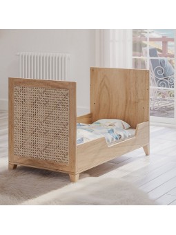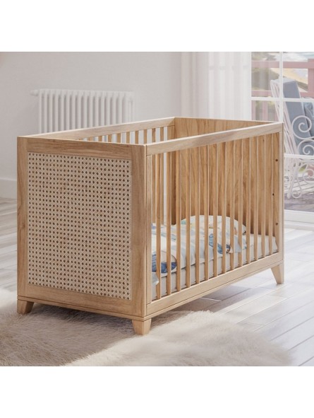 Lit Nami Bois 60x120 cm est fait pour les amoureux de la nature. Fabriqué en véritable bois, pour les parties bois massif et de feuilles de bois pour le placage des panneaux, il sent bon la nature et le bois, sans imitation. Combiné avec ses façades en rotin naturel, il est difficile de se rapprocher plus près de la nature et du bien-être qu'elle apporte. - 2 hauteurs de sommier (medium ou basse) - Pour que ce lit soit toujours utile, il peut être utilisé en petit sofa en enlevant un côté. Options: Kit évolutif : deux petits longs-pans pour une entrée et sortie autonome de l'enfant lorsqu'il en sera capable. Poids et dimensions : Dimensions extérieures (L x l x h) : 124,2 x 65 x 79 Poids du colis : 34.91 Kg (2 cartons) Matériaux et finitions : Rotin natuel, bois massif (cèdre Blanc d’Australie, melia azedarach, margousier), mdf. DISPONIBLE SOUS 4 SEMAINES