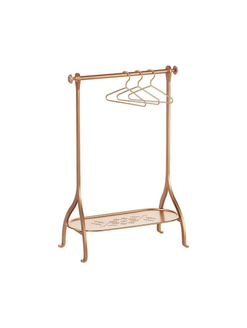Informations Techniques : On craque pour cet adorable portant à vêtements de poupées en métal doré livré avec ses 3 petits cintres assortis. Un ravissant jouet pour suspendre et ranger les jolis vêtements des petits lapins Maileg. Matière : Métal peint