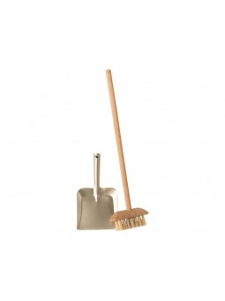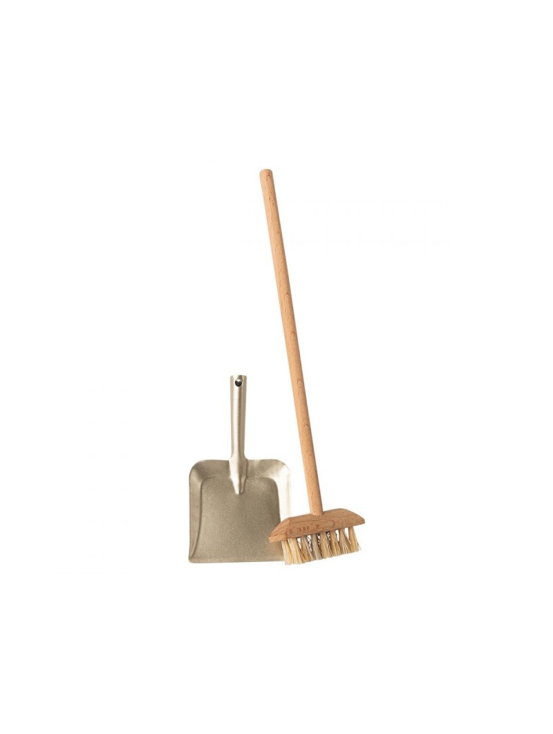 ENSEMBLE DE BALAI Avec cet ensemble de balais miniatures, vous êtes prêt à nettoyer. Le bac à poussière est disponible dans une belle couleur argentée chaude avec le balai en bois.