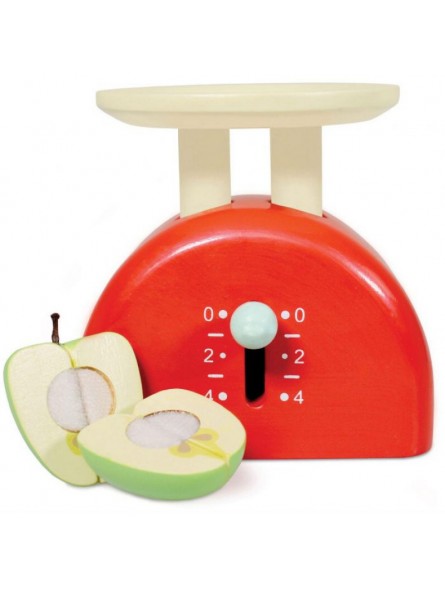 Jouet en bois -dispose d'une jauge en mouvement -avec une pomme avec velcro qui peut être divisé en quatre -aide à enseigner à votre enfant sur le poids