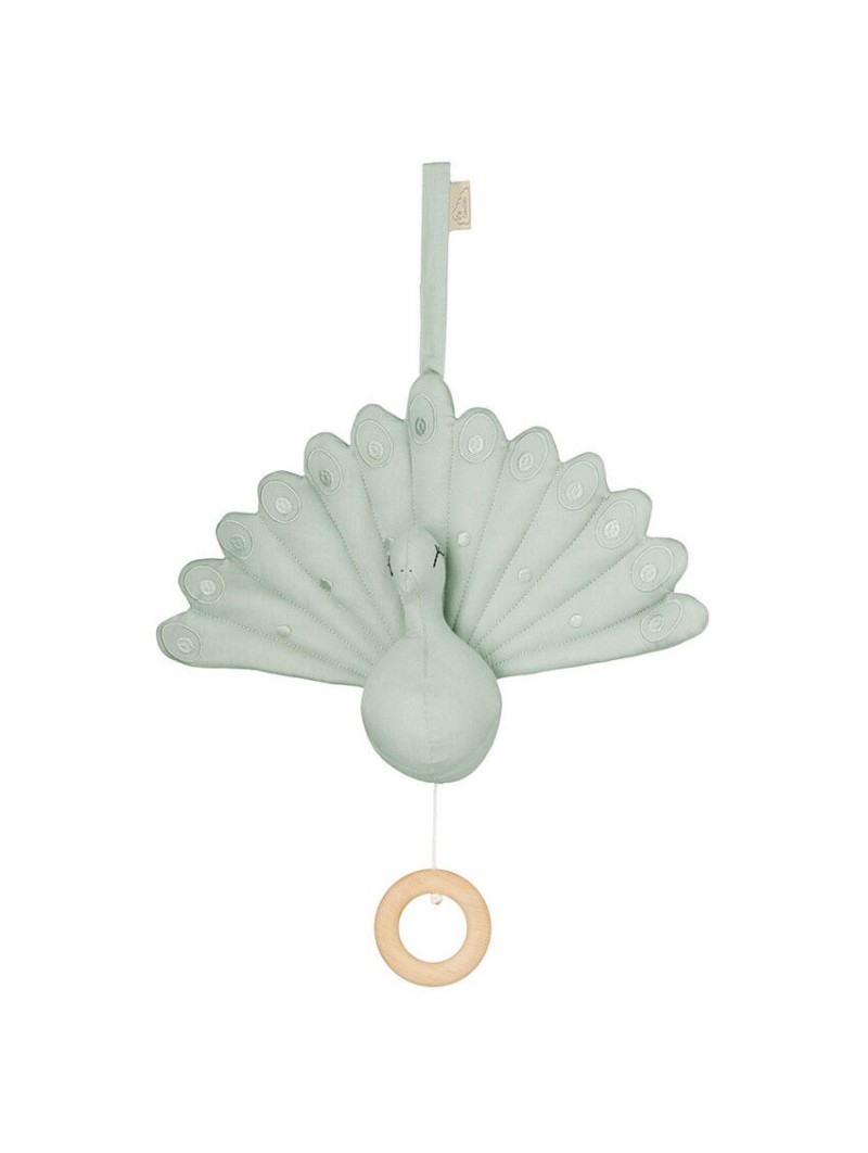 Original et poétique, ce mobile forme de paon majestueux, délicatement brodé, jouera pour bébé une musique douce qui l'aidera à s'endormir. Facile à suspendre grâce à sa boucle, vous pourrez l'installer au-dessus du lit de bébé sans problème.