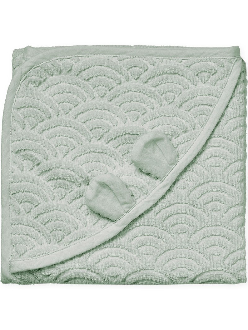 Serviette de qualité, épaisse et douce pour bébé entièrement confectionnée en coton biologique certifié GOTS, arborant le motif ondulé emblématique Cam Cam.