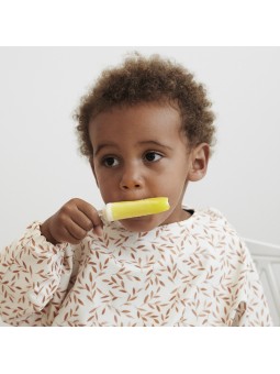 Entièrement couvrant et se refermant à l'aide d'un bouton pression, le Bavoir à Manches sera parfait pour protéger les vêtements de votre enfant au cours des repas. Il dispose d'une petite poche sur le devant qui permettra de récupérer les restes d'aliments qui ne seront pas arrivés jusqu'à la bouche !