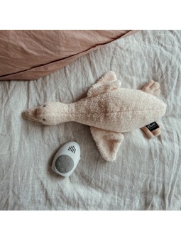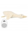 Liva Comforter est une jolie et douce oie faite pour réconforter les tout-petits. Grâce à un petit boitier, elle émettra des sons qui sauront rassurer et apaiser bébé (cours d'eau, battements de cœur ou mélodies). Grâce au timer, elle s'éteindra automatiquement au bout de quelques minutes (15, 30 ou 60 minutes). En cas de pleurs, le son se rallumera automatiquement pour calmer bébé. En polyester tricoté sur le dessus et munie d'un ventre côtelé tout doux, cette gentille oie sera idéale pour les tendres câlins. Bébé l'adoptera de suite.